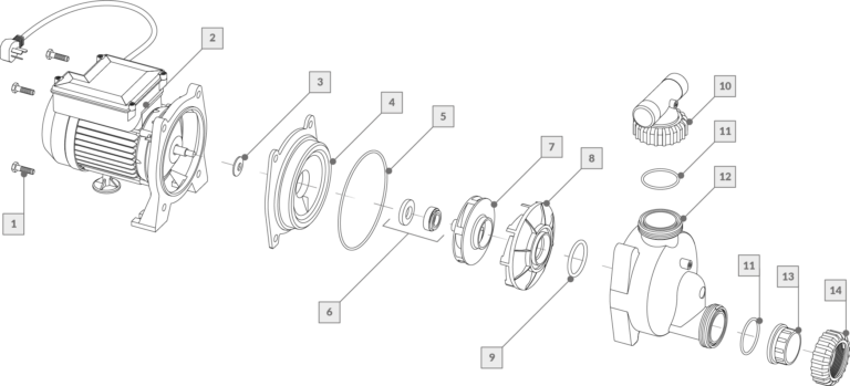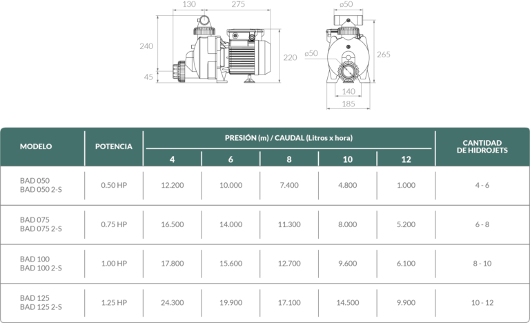 Bomba autodrenante BAD 125 - 1.25HP Vulcano. Diseñada especialmente para sistemas de hidromasajes y spas, dando un óptimo rendimiento de presión-caudal y con la capacidad de auto evacuar toda el agua de su interior.