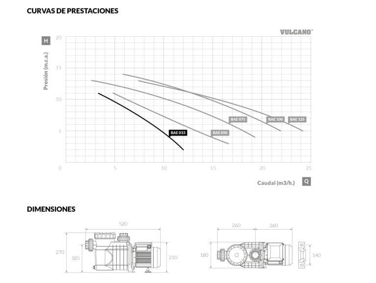 Bomba autocebante para piscina BAE 033 Vulcano. Su diseño confiable la convierte en la elegida por los instaladores.
