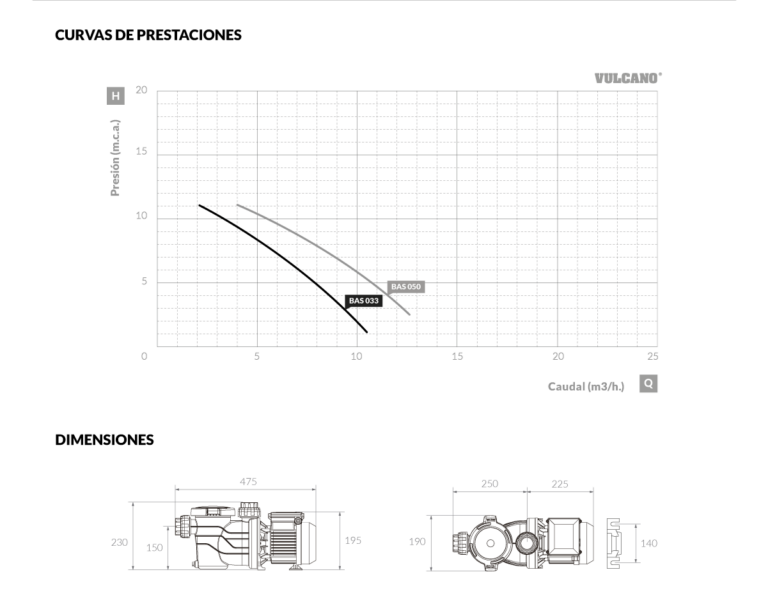 Bomba autocebante para piscina BAS 033 Vulcano. Se caracteriza por su diseño ultra compacto que ofrece un excelente rendimiento para piscinas pequeñas.