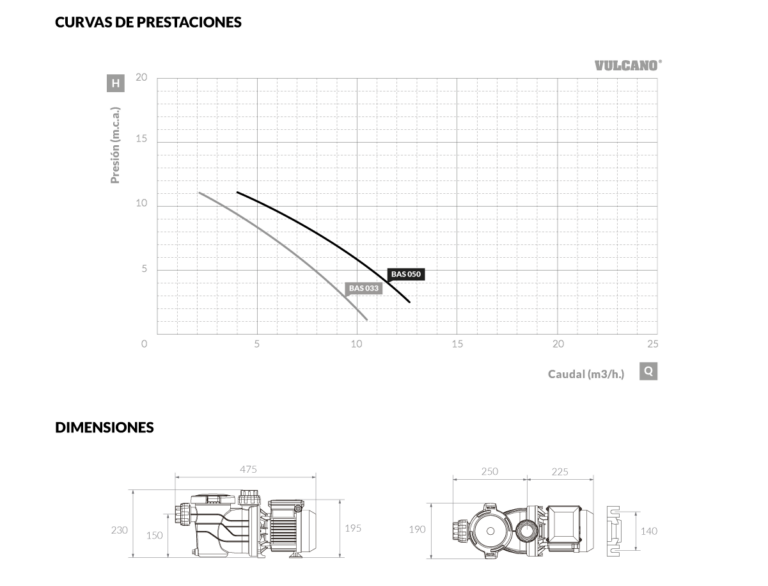 Bomba autocebante para piscina BAS 050 Vulcano. Se caracteriza por su diseño ultra compacto que ofrece un excelente rendimiento para piscinas pequeñas.