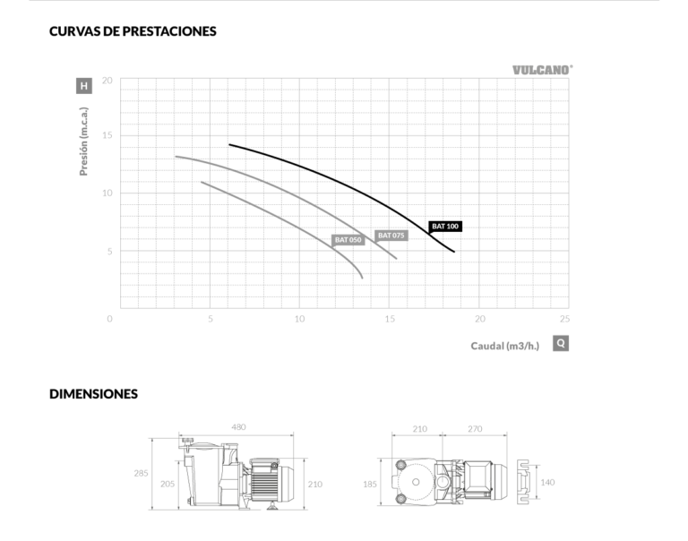 Bomba autocebante para piscina BAT 100 Vulcano. Diseño tradicional. Cuenta con un canasto atrapa hojas amplio y sistema de tapa tipo mariposa de rápida apertura con un ¼ de giro.