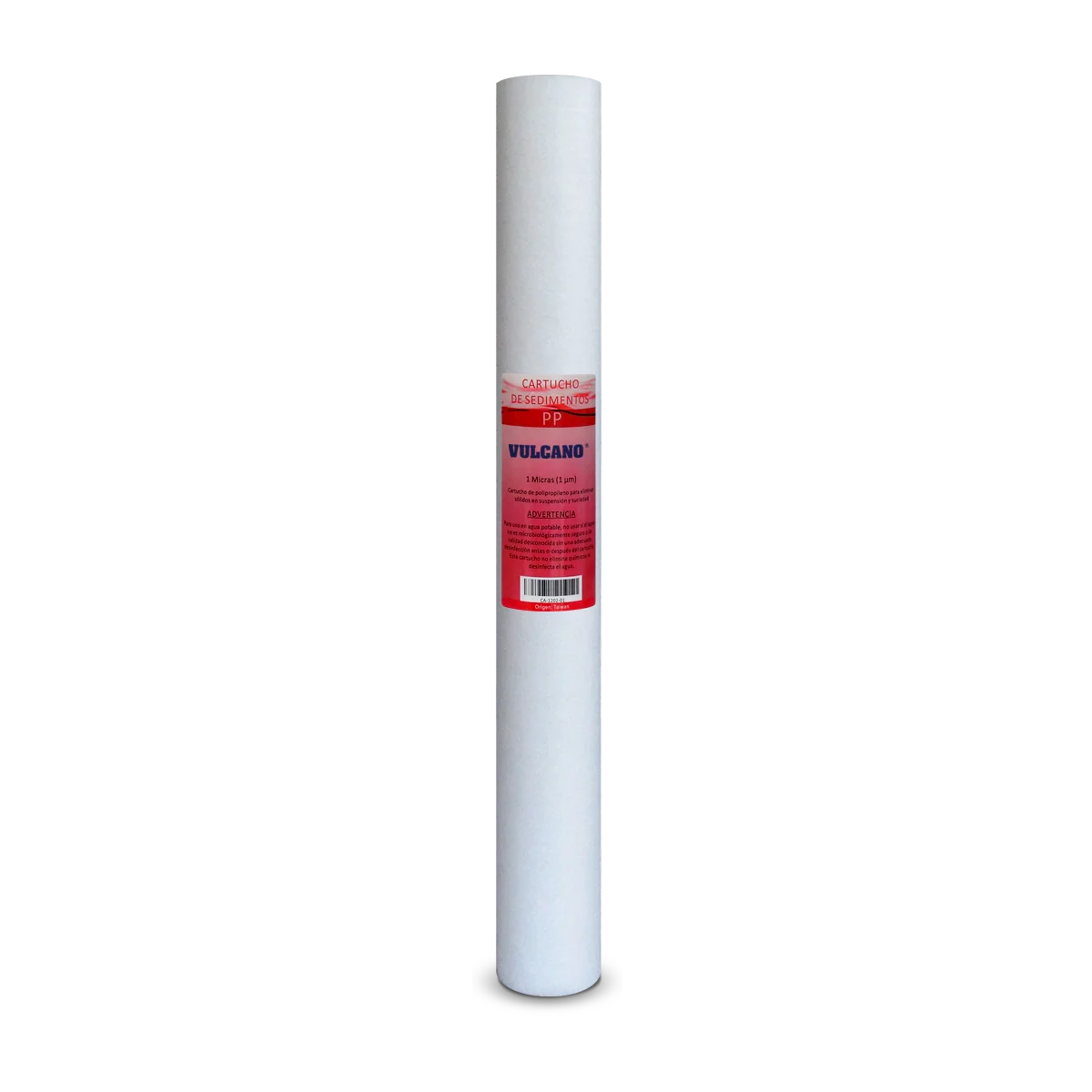 Cartucho para sedimentos 2.5" (63 mm) x 20" largo, de 1 micron. Cartuchos compactos de polipropileno extrusionado de grado alimenticio con gran capacidad de retención.