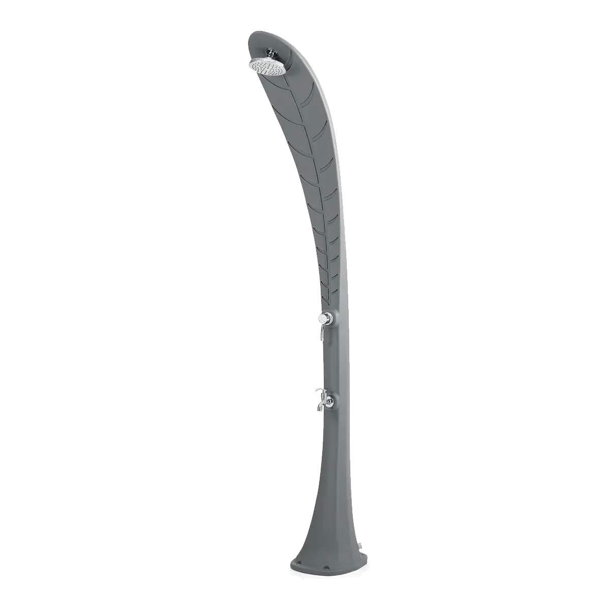 Ducha solar Vulcano para piscina. Agregá valor a tu piscina gracias a su diseño y estilo moderno, su flor de gran tamaño genera una lluvia agradable y, gracias a su grifería monocomando, la regulación de la temperatura del agua es muy sencilla. Su depósito interno tiene capacidad para almacenar 35L de agua.