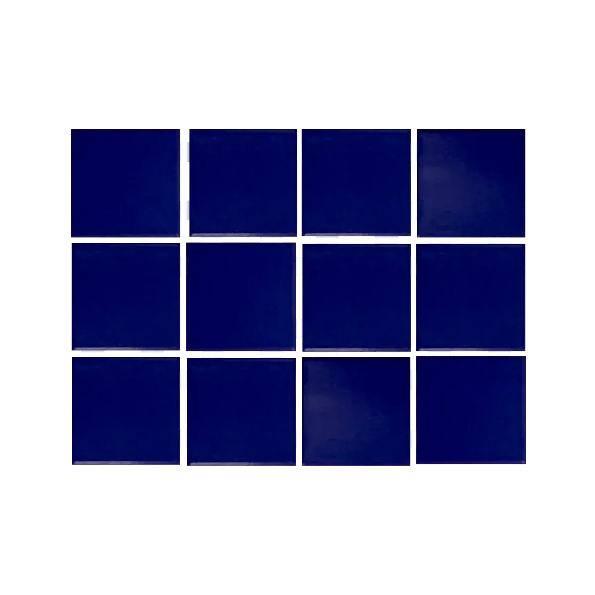 Malla cerámica Vulcano color cobalto texturada para revestimiento de piscinas. Dispuesta en módulos de 3x4 cerámicos (10 cm x 10 cm y 6,8 mm). Cada caja permite cubirir hasta 1,95 m².