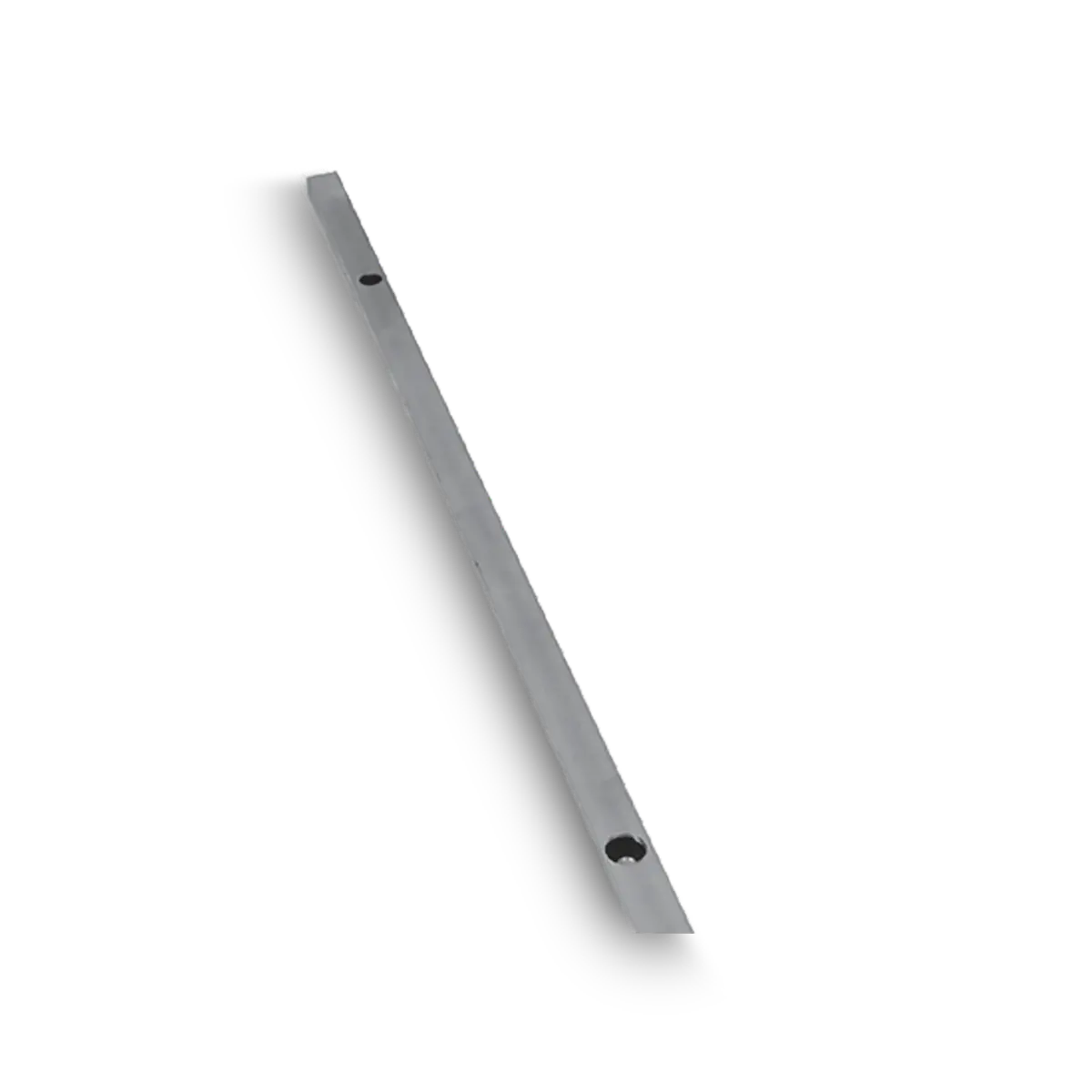 Perfil rectangular de aluminio de 1,1 m de largo con 2 perforaciones pretaladradas; permiten el montaje del colector solar sobre el piso o techo. Utilizando 2 rieles de montaje cortos se pueden instalar 1 colector solar.